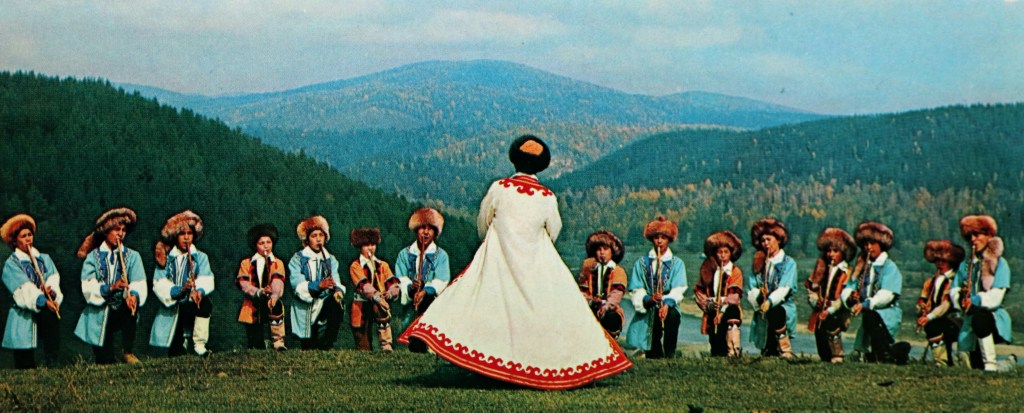 The different ASSRs (Autonomous Soviet Socialist Republics) were featured prominently in the postcard series of the Soviet Union. Producer of the postcards was ultimately the state, and the patronizing orientalist attitude was prevalent in the imagery, especially when representing different ethnic groups. Here is a postcard of Bashkiria, small area between Ural mountains and Kazakhstan border. Old traditions, partly folklore, partly fakelore, are highlighted to the point of kitsch. Stance towards national traditions and cultural heterogeneity changed from time to time. In the field of tourism it was more accepted and even desirable to bring forth the national heritage, especially in the last decades of the Soviet Union.