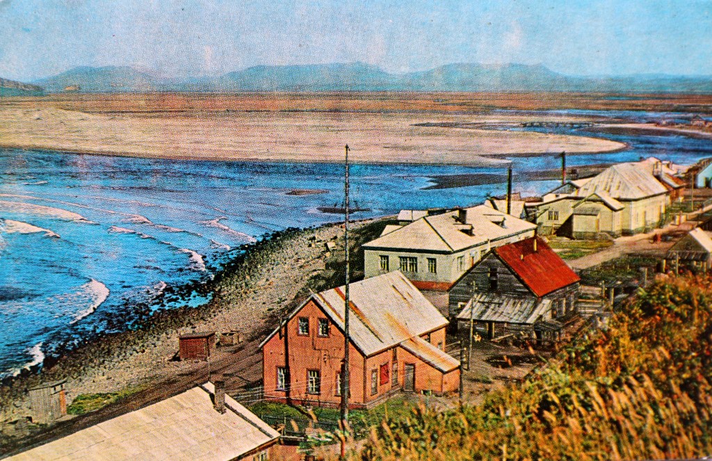 Most Soviet tourists flocked to the typical holiday destinations like Crimea and Caucasus. The state, anyhow, wanted to boost also other places, if not actually for tourism, then to advertise the grandeur of the Soviet Union. For this reason even some extremely remote places ended up in tourist postcards. Here is a postcard from 1980s showing a village in Komandorski Islands. The island group is situated in the middle of Bering sea, almost 200 kilometres from the mainland and the Kamchatka peninsula. They are treeless and rocky islets, basically wasteland, and didn’t probably get any tourism. Still, the Soviet Union printed a series of postcards of the Komandorski Islands, and with quite distinctive style, too.